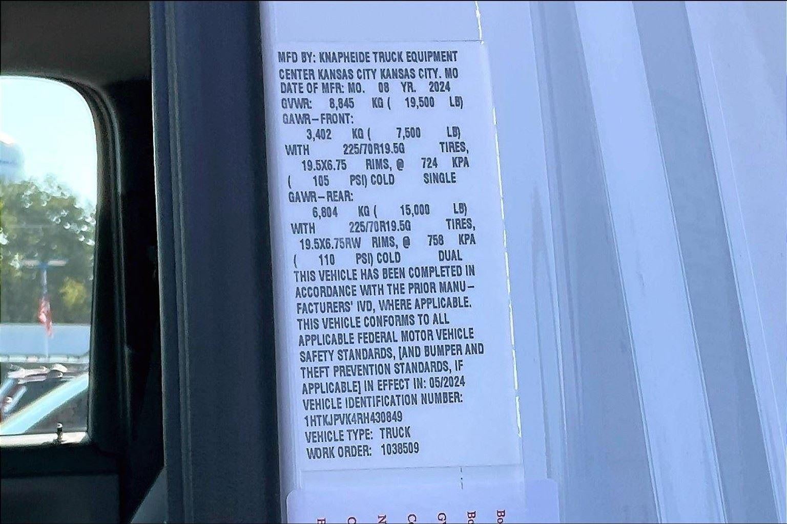 • Tires, rear 225/70R19.5G traction blackwall Pirelli Max Axle Load: 15,000 lb.