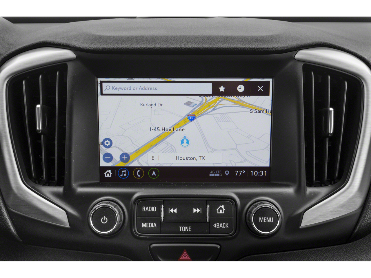 - The vehicle is equipped with a camera that displays an image of the area behind the vehicle on an interior display.