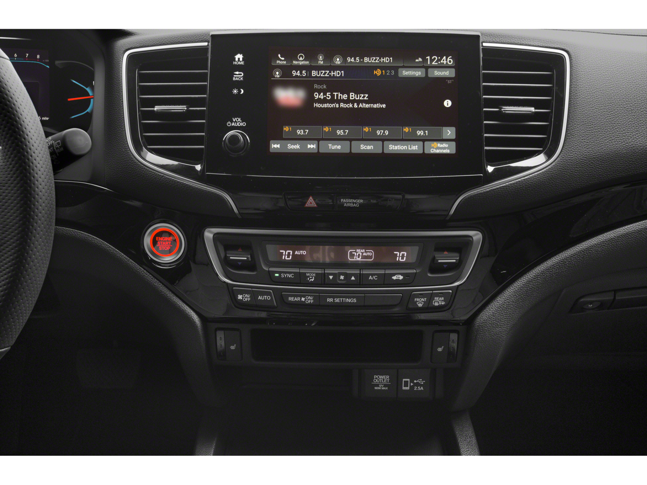 - Radio: 540-Watt Premium Audio System w/10 Speakers -inc: subwoofer, 8" display audio w/high-resolution electrostatic touch-screen and customizable feature settings, Bluetooth® HandsFreeLink, Bluetooth® streaming audio, MP3/auxiliary input jack in center console, Radio Data System (RDS), Speed-Sensitive Volume Compensation (SVC), (3) 2.5-amp USB charging ports, 12-volt power outlets in front console, center console and cargo area, HondaLink, Apple CarPlay integration, Android Auto integration, CabinControl remote compatibility, SMS text message function, SiriusXM radio, HD Radio, mobile hotspot capability (requires AT&T data plan), 2.5-amp USB smartphone/audio interface port in front console, Honda Satellite-Linked Navigation System w/voice recognition and Honda HD digital traffic, 115-volt power outlet and HondaLink subscription services SiriusXM services require a subscription after any trial period. Honda HD digital traffic service is only available in the United States, except Alaska.