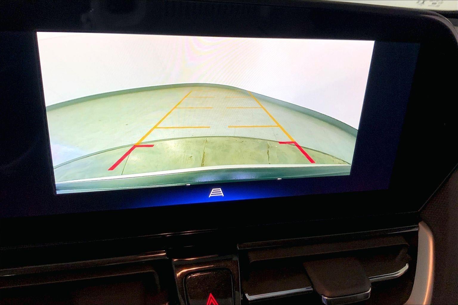 - The vehicle is equipped with a camera that displays an image of the area behind the vehicle on an interior display.